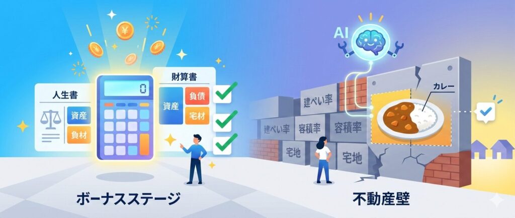 私が一番苦労したのは「不動産」でした。日常生活では「土地」としか言わないものを、試験では「宅地」と呼び、「建ぺい率」や「容積率」といった聞き慣れない数字に追い回されます。こここそAIの真骨頂。「建ぺい率を、カレーライスのルーとご飯に例えて説明して」といった無茶振りでも、AIは分かりやすく教えてくれます。専門用語の壁は、AIと一緒に乗り越えましょう。